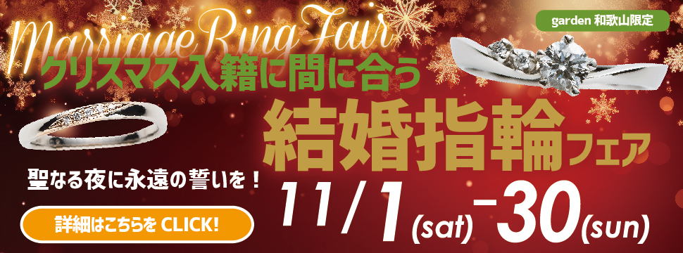 聖なる夜に永遠の誓いを♡クリスマス入籍に間に合う結婚指輪フェア 11/1(Sat)~11/30(Sun)