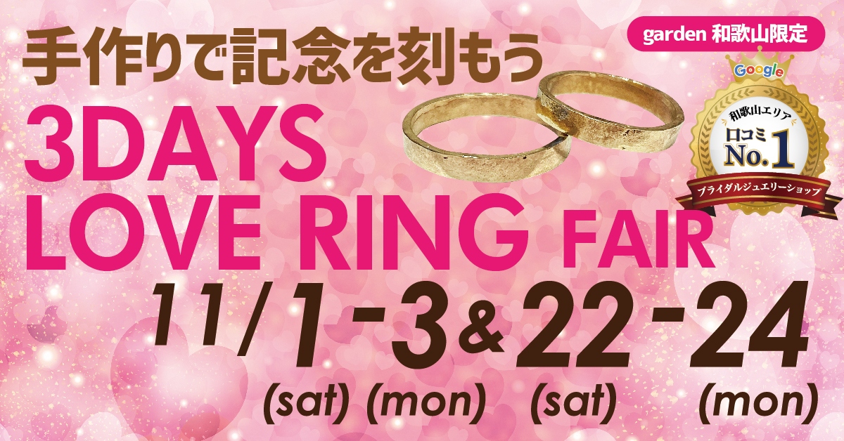 【garden和歌山限定】11/1.2.3&11/22.23.24 3DAYS LOVE RING FAIR-手作りで記念を刻もう-