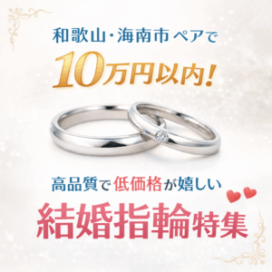 和歌山・海南市 ペアで10万円以内!高品質で低価格が嬉しい結婚指輪特集