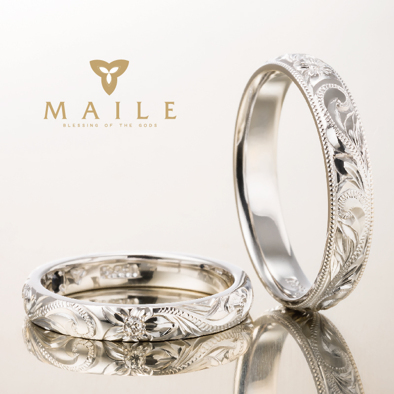 マイレのブライダルコレクションでは、金属を鍛え上げて地金をつくりだす一切つなぎ目のない「鍛造切削製法」でおつくりしています。